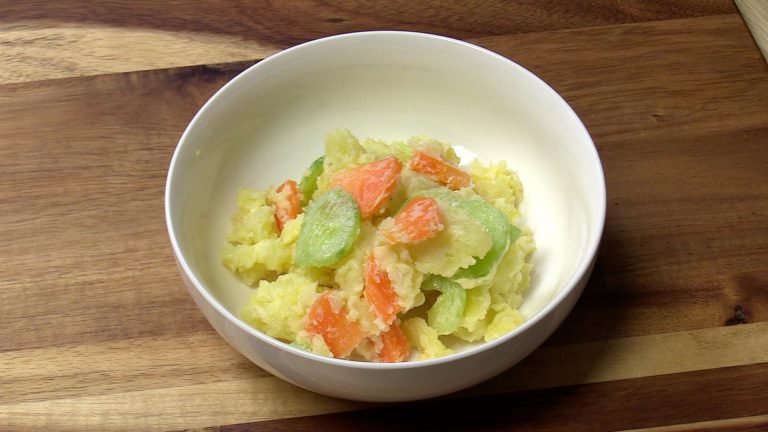 きれいな彩で食べるのが楽しくなる、ポテトサラダです。